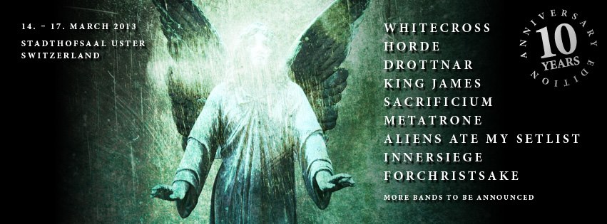 publié par , le 18 juin 2019Ah déjà dix ans... On en viendrait presque à regretter les quelque années manquées... Il faut dire que presque tous les grands noms du metal chrétien sont passés à ce festival : Seventh Avenue, Drottnar, Tourniquet, Inevitable End, Theocracy, Horde, Seventh Angel, Whitecross, Antestor, et ce serait trop long de tous les citer !
